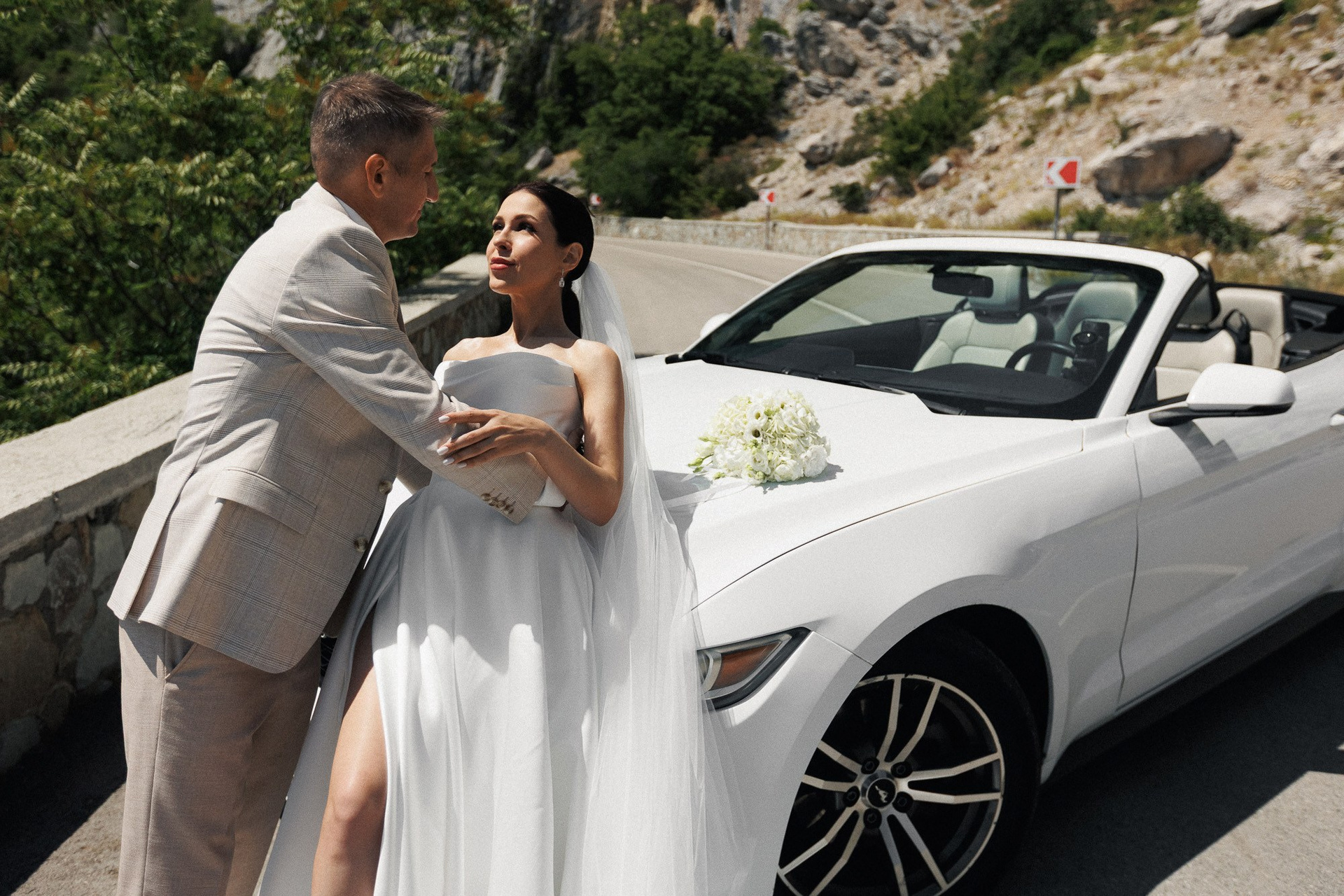 Зажигательная и отвязная свадьба Никиты и Марго в стиле Old Money и Гэтсби с ретро автомобилем в Севастополе